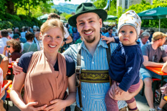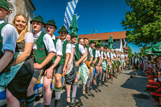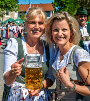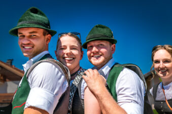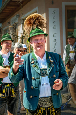 Am Dorfplatz herrschte unter den grünen Sonnenschirmen rund um die Kirche bereits ausgelassene Stimmung. Die Rohrdorfer Blaskapelle sorgte für die musikalische Umrahmung, während Familien, Jungtrachtler, Gäste und Einheimische das bunte Treiben genossen. Der Platz war gefüllt mit Leben – und mit Vorfreude auf das große Schauspiel.