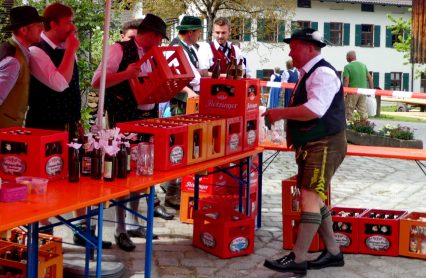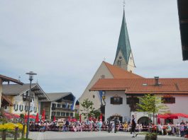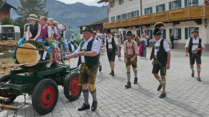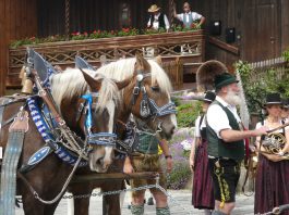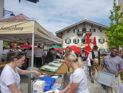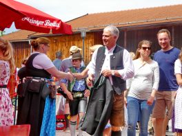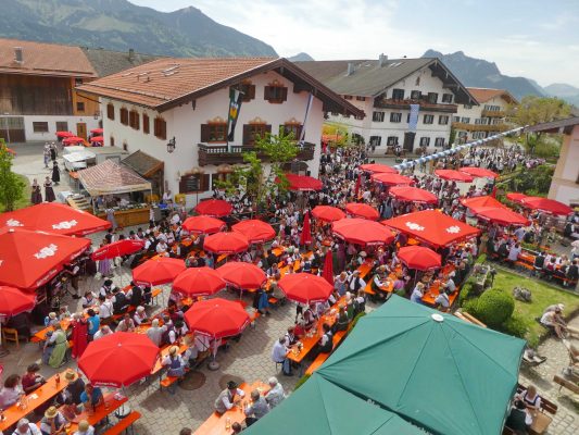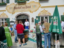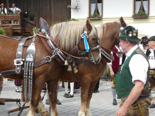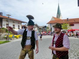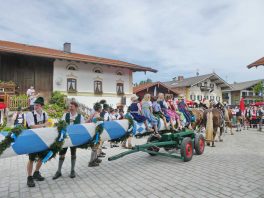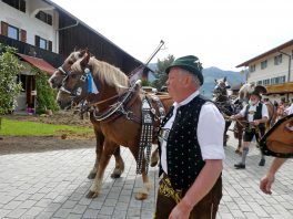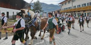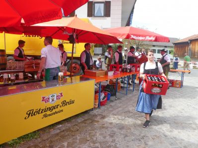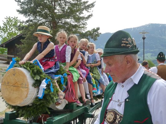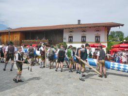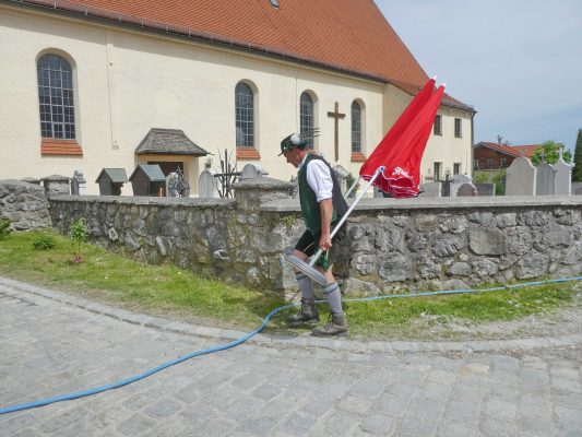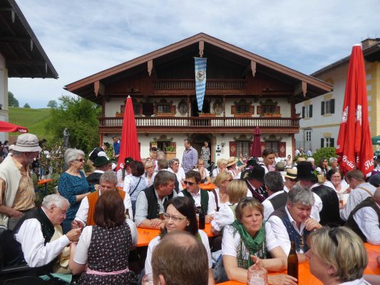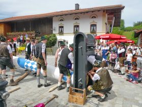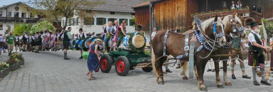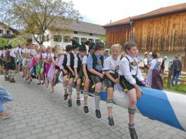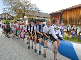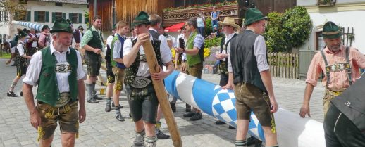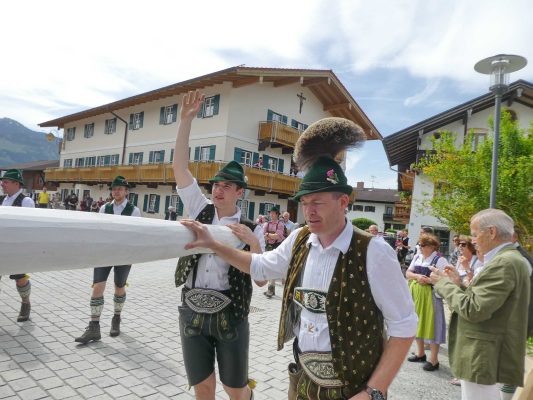 Volksfest-Charakter hatte am Samerberg das heutige Maibaumaufstellen, das die Grainbacher und Törwanger Ortsvereine gemeinsam und nach dem Ende des “Tages der Blasmusik” durchführten. Vierspännig und mit der großen Besetzung der Samerberger Musikkapelle wurde der weiß-blaue Baum auf den Dorfplatz gebracht. Mit kräftigen Stangen und Händen wurde dann der Baum von jungen Burschen und starken Männern in die Verankerung gestellt, so dass er jetzt wieder den malerischen Dorfplatz von Törwang ziert.