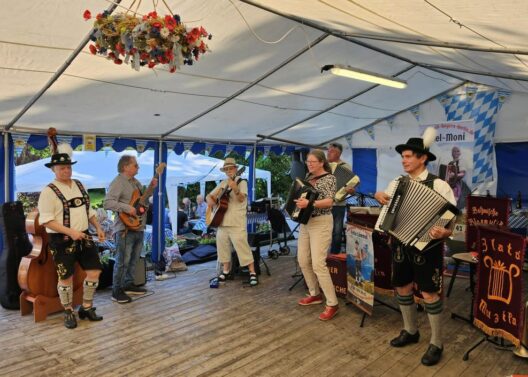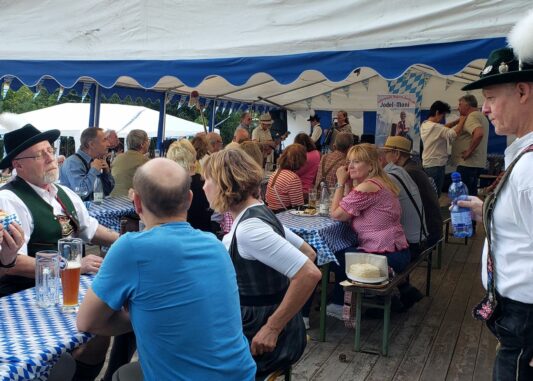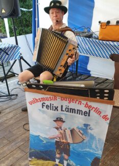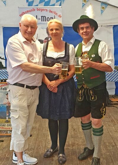 Den Auftakt zum Maitanz gab die böhmische Blasmusik „Slata Musika“ aus Berlin. Traditionelle Klänge von 10 Alphörner vor dem Maibaum, verleihten der Maifeier ein gewisses alpines Flair, mit dabei Gastmusiker aus Mecklenburg. Weiterhin wurde die Feier von den Steirermusikanten des Vereins, der Jodel-Moni und dem Löffel-Felix, sowie von Musikern des Musikerstammtisch Berlin musikalisch umrahmt. Zur fortgeschrittenen Stunde sorgte der Alpen-DJ Wanja für Hochstimmung auf den Terrassen über dem Alpengarten des Bayernplatzes. Für den Gaumen gab es u. a. pikante Thüringer Bratwürste und original bayerischen Leberkäse, dazu selbstverständlich Hopfengetränk gemäß bayerischer Biertradition. Ein besonderer Dank gilt dem Helferteam des Vereins für das Gelingen der Feier. Während in der City Berlins die legendären Mai-Demonstrationen im Gange waren, haben die Berliner Bayern mit ihren Gästen im Süden der Bundeshauptstadt eine gemütliche 1. Maifeier 2024 nach bayerischer Biergartentradition erlebt.