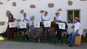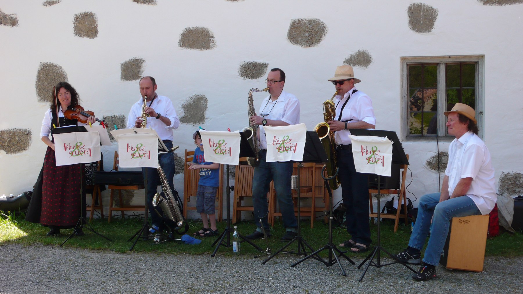 Schwungvoll und heiter spielt das Wasserburger Quintett „kreiz&quer“ zum Frühschoppen auf. © Bezirk Oberbayern, Archiv BHM.