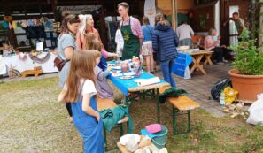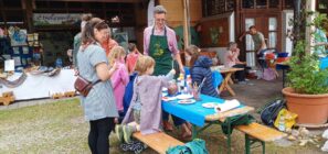 Reger Betrieb mit vielen Besuchern herrschte beim Maimarkt am Naturpavillon in Übersee. Das Wetter war ideal – noch kein Regen, aber warme Temperaturen, bei denen man die vom Trachtenverein angebotenen Salate und Brotzeiten genießen konnte. Begleitet vom Pflanzentauschmarkt des Gartenbauvereins und dem Bauernmarkt eröffneten der Bund Naturschutz und der Landesbund für Vogelschutz ihre Ausstellung „Insekten – unverzichtbar“. Auf Bildtafeln wird die hohe Bedeutung der Insekten erläutert, unter anderem zur Bestäubung von Bäumen und Pflanzen und als Nahrungslieferant. Sie zeigt die Ursachen des Insektensterbens wie eine zubetonierte Landschaft, der Einsatz von Pestiziden oder zu viel und falsche Beleuchtung in der Nacht. An vielen Ständen wurden regionale Produkte wie Honig, aber auch Töpferarbeiten und Fossilien angeboten. Zur musikalischen Unterhaltung spielte ein Drehorgelspieler allseits beliebte Stücke. Die vielfältigen, leckeren Kuchen der Mütter vom Kindergarten Zellerpark fanden reißenden Absatz. Aber auch die Kinder hatten genügend Beschäftigungsmöglichkeiten, wie Steine, Stöcke und Korken bunt zu bemalen oder beim Kinderflohmarkt etwas Neues zu finden.
