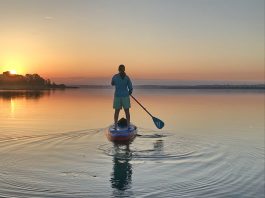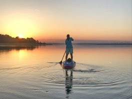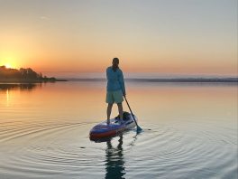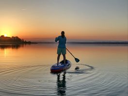 Ein ganz und gar besonderer Natur-Genuss bietet sich Frühaufstehern auf dem Chiemsee in diesen sonnigen Sommertagen. Fast schon majestätisch wirkt die Stimmung, wenn über dem “Bayerischen Meer” sowie über der Frauen-, Herren- und Krautinsel die Sonne aufgeht – wie diese aktuellen Aufnahmen von einem Stand-Up-Paddel-Ausflug ab dem Freibadeplatz Schraml in Prien-Harras zeigen.