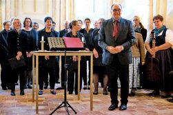 Hubert Huber an der selbst mitgebrachten Orgel führte behutsam und geschmackvoll in die Chorstücke ein. Klangkultur par excellence ist das Markenzeichen des Ludwig-Thoma-Chores, der soeben sein 15 jähriges Bestehen feiern konnte. Auf dem Programm standen das  6 stimmige Angelus Domini von Franz Biebl, eine Salve Regina und Magnificat von Sebastian Weyerer und das Bogoroditse von Rachmaninov. Beim abschließenden Segne du, Maria konnten sich die Zuhörer noch selbst einbringen.