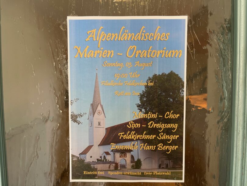 Ein alpenländisches Marien-Oratorium wird am Sonntag, 3. August, um 19 Uhr in der Filialkirche Feldkirchen bei Rott am Inn aufgeführt.