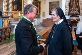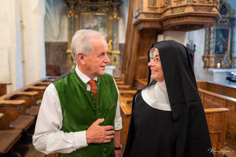 Frauenwörth. Am vergangenen Sonntag wurde sprichwörtlich der gesamte Chiemsee zum Klingen gebracht. Einerseits durch die fünf Blaskapellen, die an den verschiedensten Plätzen ihr Können zum Besten gaben. Jedoch auch in der Klosterkirche Frauenwörth auf der malerischen Fraueninsel, in der Hans Berger mit seinem Ensemble sowie seinem stimmgewaltigen Montini-Chor gastierte. Zu Gehör kam das von ihm selbst komponierte Alpenländische Marien-Oratorium. Anlässlich des 25jährigen Jubiläums des Freundeskreises der Abtei Frauenwörth im Chiemsee fand dieses Konzert statt. Die Vorsitzende Annemarie Biechl (MdL) zeigte sich in ihrer Begrüßung sehr erfreut, dass so viele Besucher, Freunde und Förderer der Einladung gefolgt waren. Ganz besonders willkommen hieß sie die Äbtissin Frau Johanna Mayer OSB, sowie Alois Glück, Gründungs- und Ehrenvorsitzender des Freundeskreises Frauenwörth und den Landtagsabgeordneten Klaus Stöttner.