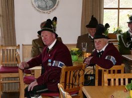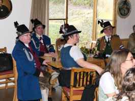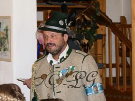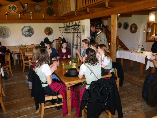 Ganz herzlich begrüßte Meier den, wie Sie sagte „Nagelneuen“ Gauhauptmann von der GSK Aschau Hans Rucker und seine Bataillonsführung, alle Gauhauptleute der Kompanien, die Marketenderinnen, besonders dessen Hauptmann von Wössen – Achental, Georg Haslberger, die Musikerinnen Steffi Wimmer und Frieda Viehhauser aus Bergen, sowie das Küchenpersonal.