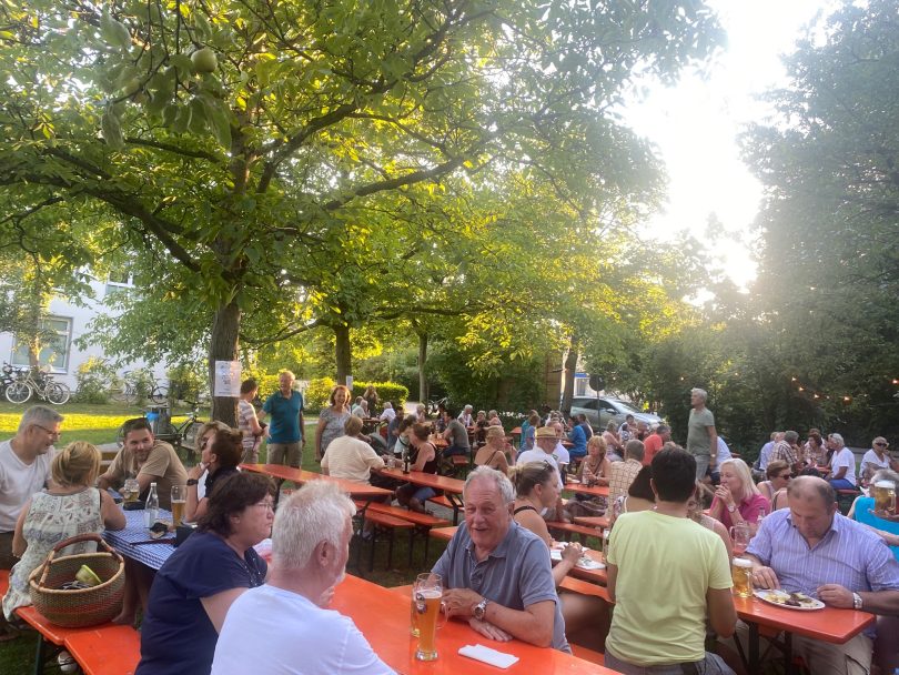 Gelungen ist die Premiere des Bürger-Biergartens in Bruckmühl. Bereits am ersten Tag waren die Garnituren voll besetzt. Ab 17.30 Uhr kamen die Besucher und genossen die schattigen Platzerl an diesem besonders lauen Sommerabend. Nach Einbruch der Dunkelheit sorgten Lichterketten in den Bäumen zudem für Stimmung. Diese war unter den Besuchern sowieso ausgesprochen gut und es war an den verschiedenen Tischen ein „Grias di, wie geht’s, schön dich zu sehen“ zu hören.
