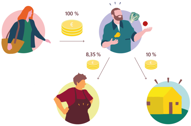 Diese Transparenz lebt Marktschwärmer auch in Bezug auf das Geschäftsmodell. Bei Marktschwärmer kauft der Kunde direkt vom Erzeuger. Kosten für Zwischenhändler oder Marktgebühren gibt es nicht. Der Erzeuger legt den Verkaufspreis seiner Produkte selbst fest, weil er selbst am Besten weiß, was seine Arbeit und seine Produkte wert sind. Vom Nettoumsatz gibt der Erzeuger eine Servicegebühr in Höhe von 18,35% ab – einen Anteil davon erhält der Gastgeber seiner lokalen Schwärmerei, den anderen das Marktschwärmer-Team. 81,65% seiner Einnahmen abzüglich Steuern bleiben beim Erzeuger.