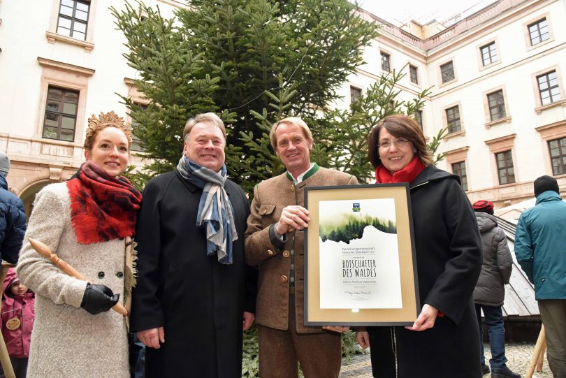 Foto: Minister Helmut Brunner (2. v. l.) mit v. l. Waldprinzessin Maria Sinning, Waldbotschafter Markus Wasmeier und der neuen Vorsitzenden der Schutzgemeinschaft Deutscher Wald Bayern, Tanja Schorer-Dremel, MdL.