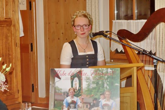 Mit dem Satz „Die Liebe hat Spuren hinterlassen“ und mit den besten Wünschen für die zukünftige Familienplanung hat Gauvorstand Miche Huber vom Chiemgau-Alpenverband der bisherigen Gau-Dirndlvertreterin Anna Pfisterer alles Gute gewünscht. Nachfolgerin in diesem Amt innerhalb des Verbandes, der Gaugruppe und bei Auftritten wird Marlies Huber aus Wildenwart sein. Deren Wahl der Vereinsvorplattler und Vortänzerinnen im Vereinshaus von Atzing wurde bei der nunmehrigen Frühjahrsversammlung des Verbandes im Gasthaus „Kampenwand“ in Bernau von den Delegierten bestätigt. Die Wahlleitung hatte Klaus Zaisberger vom Trachtenverein Grassau inne.
