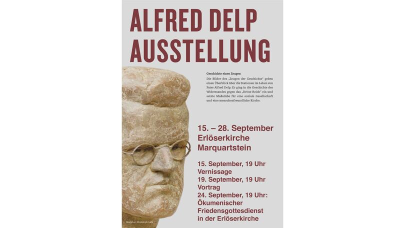 Vom 15. bis 28. September findet in der Erlöserkirche Marquartstein eine Ausstellung über Pater Alfred Delp statt. Die Schau beleuchtet das Leben des Jesuiten, der im Widerstand gegen das NS-Regime stand und Maßstäbe für eine soziale Gesellschaft und eine menschenfreundliche Kirche setzte.