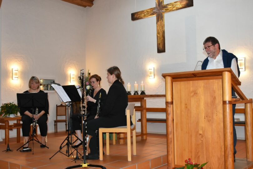 „Wort und Musik“ war der Titel des Konzertes in der Evangelischen Erlöser Kirche mit Urlaubsseelsorger Ulrich Marstaller. Die musikalische Gestaltung lag in den Händen vom Ensemble ClariNova mit Marlene Noichl, Stefanie Menter und Elisabeth Baur mit ihren Klarinetten. Es wurden Komponisten unterschiedlicher Epochen und Stile der Musikgeschichte, von der Barockzeit (Bach) über die Wiener Klassik (Mozart) bis zur Romantik (Schuman, Mendelsohn) in ganz wunderbarer Weise gespielt.