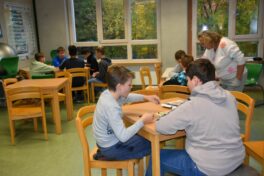 Aber auch die weiteren Angebote werden von den Schülern gut genutzt, sie können sich entscheiden, ob sie Spiele machen wollen, sich bewegen wollen mit Basketball, Fußball oder Kletterwand in dem großen Turnraum, ob sie mit der Kunstlehrerin malen wollen, oder noch ihre Ruhe brauchen bei einer Meditation im Ruheraum. Alle Angebote werden von den Fachlehrern begleitet.