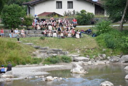Los ging es mit einem Block traditioneller Blasmusik, bei Polka und Marsch machten es sich die Zuhörer mit einem Getränk gemütlich auf den großen und warmen Steinen oder hielten ihre Füße ins kühle Nass der Ache. Doch bald ballten sich die dunklen Wolken und es kam angenehmer Wind auf nach einem heißen Tag. Mit dem Wind wurden auch die Musikstücke beschwingt, mit einem Medley „Golden Swing Time“, einer Popballade der neuesten Generation „Vicky“ und dem rockigen „It’s a beautifull day“, mit „Brassed up Funk“ und einem ABBA-Medley waren die Zuhörer in bester Stimmung und auch die Musiker mit ihrem Dirigenten Konrad Müller hatten offensichtlich Freude an dem Platz. Gewürzt wurde das feine Konzert mit fröhlichen Ansagen von Horst Lehnert. wun