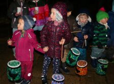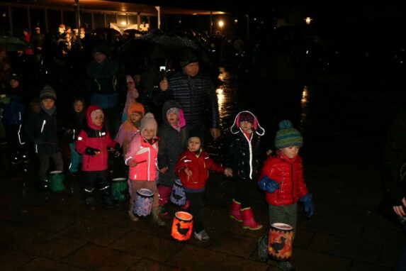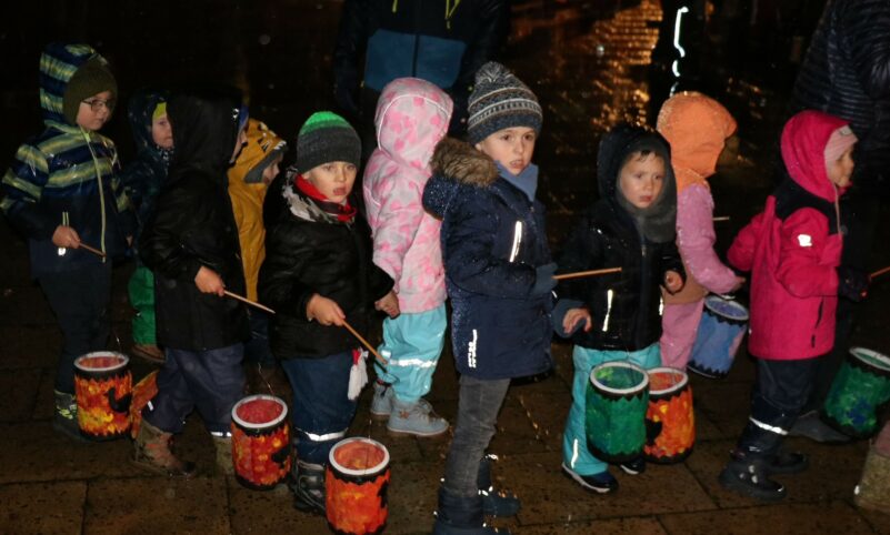 „Ich geh mit meiner Laterne“: Zum Martinszug trafen sich bei Nieselwetter und Eisregen die Kinder der beiden Aschauer Kindergärten Spatzennest und Sankt Marien mit ihren selbst gebastelten Laternen. „Rabimmel, rabammel rabumm“, singend und voller Freude zogen sie mit ihren Lichtern durch die Dunkelheit zum hell erleuchteten Pavillon in den Kurpark. „Bei dem Wetter könnt ihr euch vorstellen, wie wichtig der halbe Mantel für den frierenden Bettler war“, empfing sie Pfarrer Paul Janßen mit vielen Eltern und Großeltern. Gemeinsam hörten sie die Geschichte vom heiligen Martin und sangen die Lieder rund um den Heiligen. Sie bestaunten den Reitersoldaten, der vor ihren Augen seinen Mantel mit dem armen Bettler teilte. Ein Martinsweckerl und die Aufforderung von Pfarrer Janßen es zu Hause zu teilen, waren der Lohn für die Kinder für ihren weiten Weg durch die Nacht mit den hell leuchtenden Laternen. Der Förderverein der Aschauer Kinder versorgte alle Teilnehmer am Martinszug im Kurpark mit Speisen und Getränken.