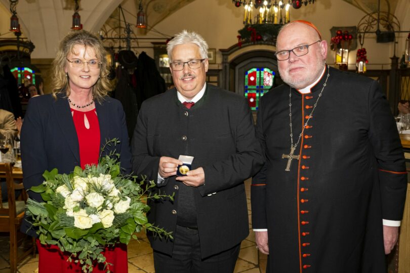 Bei einem anschließenden Festakt im Münchner Ratskeller hob Marx die „große Herzlichkeit“ sowie „das Bedürfnis und die Fähigkeit, Leute miteinander zu verbinden“, als Eigenschaften hervor, die den Gewürdigten auszeichneten und zu dessen Erfolg in drei Amtszeiten beigetragen hätten. Gewählte Führungspersonen müssten so wie Tremmel im Stande sein, „eine Gemeinschaft zueinander zu führen und auf ein Ziel hin zu motivieren“, so Marx. Der frühere Diözesanratsvorsitzende habe sein Talent als Brückenbauer im komplexen Gebilde der Kirche und in der Gesellschaft eingebracht, um „polarisierte Bubbles“ zu verhindern, Austausch zu ermöglichen und konstruktive Lösungen zu finden. Kardinal Marx sagte „Danke für Ihre Treue, danke für Ihr Engagement“ und zeichnete den 59-jährigen Tremmel mit der Korbiniansmedaille für besonderes ehrenamtliches Engagement aus.