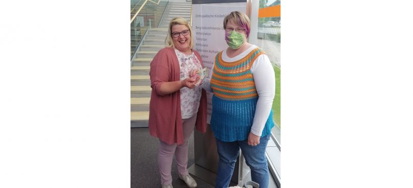 Christine Kutschka (links) aus der orthopädischen Kinderklinik in Aschau nähte vom Beginn der Corona-Zeit an mit viel Hingabe hübsche Baumwoll-Stoffmasken, um den anfänglichen allgemeinen Masken-Engpass der Klinik in der Krisenzeit etwas abzufangen. Diese selbst gemachten Masken stellte sie den Patienten und Mitarbeitern in der Kinderklinik gegen eine kleine Spende zur Verfügung. Dabei kamen seit April 1000 Euro als Erlös zusammen. Diesen Betrag übergab sie jetzt an Sabrina Pollinger (rechts) vom Schlawinertreff der orthopädischen Klinik. Die Leiterin des sozialen Treffs nahm den Betrag mit großer Freude entgegen und wird ihn voraussichtlich in Playmobil Spielzeug investieren, das derzeit bei den Kindern äußerst beliebt ist.