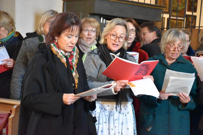 Eine ihrer verschiedenen Veranstaltungen findet einmal im Jahr in Schleching statt. Ein Chorzirkus-Singwochenende mit dem Titel „Die Schweineterz“. Der Ort hierfür könnte nicht schöner sein für die Volkslieder und Kanons, nämlich in der kleinen Kirche auf dem Streichen. Nach fleißigem Üben in den Tagen davor, fand die Abschluss Matinee am Sonntagmorgen statt. Passend eröffnet wurde mit dem Lied „Der Mai ist gekommen“ und mit dem nächsten Kanon „Es tönen die Lieder“ die Zuhörer gleich mit einbezogen. Danach wurden die Besucher mit Mozart und „Luci care“ fröhlich nach Italien entführt. Instrumental begleitet wurde der Chor von Alois Rottenaicher an der Orgel. Es war erstaunlich, wie er der alten Barock-Orgel bei seinen zwei Solo-Stücken so wunderbare Töne entlocken konnte, mal dramatisch und dann wieder leichtfüßig durch den Kirchenraum schwebend. Die Chorleiterin, Rose Bihler Shah fühlte sich von den alten Wilderer-Geschichten aus Schleching inspiriert und es wurde das Jennerwein-Lied zum Besten gegeben.