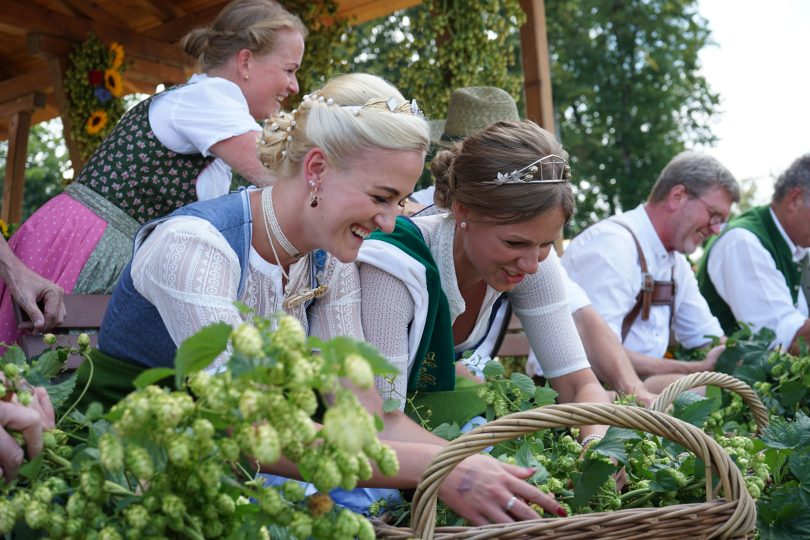 Im Hopfengarten von Maxlrain kommt es am Sonntag, 28. August zu einem besonderen Erlebnis, wenn es wieder heißt: Hopfazupfa-Fest ist wieder – dazu heißt es: