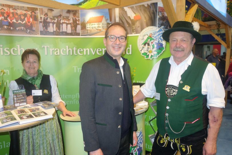 Zu einem Informationsaustausch am Stand des Bayerischen Trachtenverbandes fand sich der Bundestagsabgeordnete und Vorsitzende von der CSU-Landesgruppe Alexander Dobrindt in der Bayernhalle auf der Internationalen Grünen Woche in Berlin ein. Dobrindt lobte dabei die Präsenz des Trachtenverbandes mit vielen Kontaktmöglichkeiten sowie die Auftritte der vielen aus Bayern angereisten Musik- und Trachtengruppen. Walter Weinzierl, Ehren-Kassier des Bayerischen Trachtenverbandes, der mit seiner Frau Anneliese die Stand-Betreuung innehat, konnte namens von Landesvorsitzenden Max Bertl die CSU-Landesgruppe zu einem Informationsbesuch in das Trachtenkulturzentrum des Bayerischen Trachtenverbandes nach Holzhausen einladen. Zugleich bedankte sich Weinzierl dafür, dass im letzten Jahr der Landesausschuss des Bayerischen Trachtenverbandes zu einem Berlin-Besuch eingeladen worden waren.