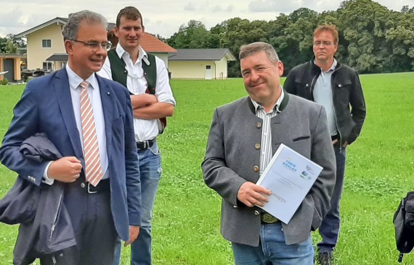 Zu einem „Spaziergang“ entlang der geplanten Neubautrasse zum Brenner- Nordzulauf lud der Fraktionsvorsitzende der FW- Kreistagsfraktion, Gemeinderat Sepp Lausch den Fraktionssprecher Florian Streibl, Mdl. Nik Kraus, stellv. Landrat und Bezirksrat Sepp Hofer, die Bürgermeister der Gemeinden Großkarolinenfeld, Tuntenhausen und Schechen ein. Auch der Bundestagskandidat der FW, Gerhard Schloots informierte sich. Gemeinsam mit einigen Betroffenen, Vertretern der Bürgerinitiativen und einigen Kreis -und Gemeinderäten marschierte man vom Hof der Familie Hofmann in Haslau rund einen Kilometer der Trasse entlang. Gleich zu Beginn stellte Christian Hofmann klar, dass sein Biobauerhof mit Weidegang auf jeden Fall dem Untergang geweiht sei, sollte die Trasse so kommen. Dies gelte für alle betroffenen landwirtschaftlichen Familienbetriebe!“ so der dreifache Familienvater. Kreisrat Sepp Lausch wies im weiteren Verlauf anhand der offensichtlichen stark hügeligen Lage auf die enormen Erdbewegungen hin, die sowohl bei oberirdischen, wie auch bei unterirdischen Verlauf der Trasse notwendig sein werden. Die Belastungen, die Mensch und Natur während der jahrelangen Bauphase durch die hunderttausende LKW-Ladungen Bauaushub erleiden müssen, mag man sich gar nicht vorstellen!“ so Lausch. Nach gut einstündigen Marsch durch Wiesen und Felder, luden die Familien Wallner, Hofmann und Lausch noch zu Kaffee und Kuchen auf den ebenfalls betroffenen Schusterhof ein. Dabei entwickelten sich noch intensive Gespräche, die noch vielerlei Argumente gegen den Bahnwahnsinn hervorbrachten. Sepp Hofer wies z.B. auf laufende technische Entwicklungen hin, wie z.B. Wasserstoff- LKW, die nahezu ohne Emissionen über den Brenner fahren könnten. Sehr nachdenklich verabschiedeten sich die beiden Landtagspolitiker der Freie Wähler für den informativen Nachmittag, der sehr zu einer Meinungsbildung beigetragen habe.