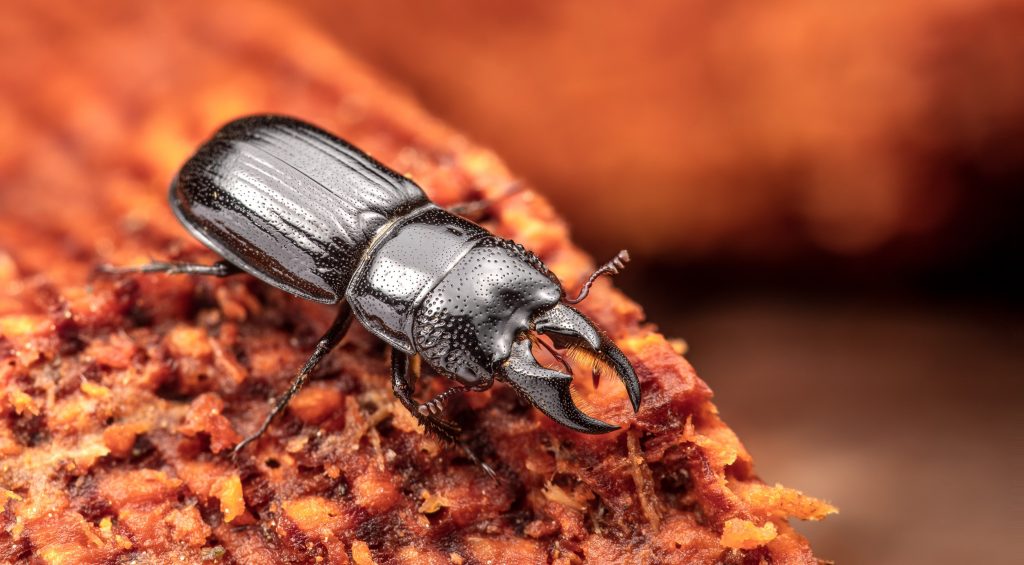 Von Totholz im Wald profitiert auch der Rindenschröter, ein im Nationalpark Bayersicher Wald lebender Urwaldreliktkäfer. (Foto: Lukas Haselberger)