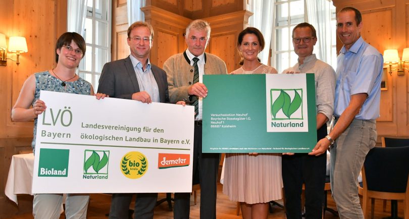 Die Versuchsstation Neuhof (Gemeinde Kaisheim, Landkreis Donau-Ries), ein Betrieb der Bayerischen Staatsgüter, wird ab sofort ökologisch bewirtschaftet. Landwirtschaftsministerin Michaela Kaniber besiegelte heute den Vertrag mit dem Naturland-Verband, dem bereits das Staatliche Lehr-, Versuchs- und Fachzentrum in Kringell bei Passau angehört. „Mit der neuen Öko-Versuchsstation verfolgen wir konsequent und beispielhaft den Weg, den Öko-Landbau weiter zu entwickeln und die Forschung in diesem Bereich voranzubringen!“ sagte die Ministerin bei der Besiegelung des Vertrags. Bayern nimmt mit rund 10.000 Biobetrieben und einer ökologisch bewirtschafteten Fläche von knapp 345.000 Hektar bundesweit den Spitzenplatz ein. 30 Prozent aller deutschen Ökobetriebe wirtschaften in Bayern. Bereits 2012 wurde das Landesprogramm “BioRegio Bayern 2020” zum Ausbau des ökologischen Landbaus ins Leben gerufen, das nun durch das Volksbegehren Artenvielfalt noch verstärkt wird.