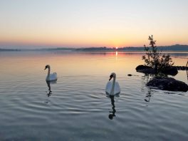 Wer sich zum frühen Sonnenaufgang in Prien an den Chiemsee wagt, der gewinnt und wird sich angesichts dieser Bilder sagen: “Mein lieber Schwan, is des schee…”. Damit kommt deutlich zum Ausdruck, dass es sich in diesem Corona-Sommer lohnt, in der Heimat Urlaub zu machen und nicht weit zu verreisen.