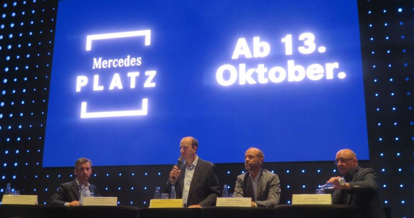 Am 13. Oktober 2018 wird nun der Mercedes-Platz nach seiner Fertigstellung feierlich eröffnet. Mit 17500 qm hat dieser Platz zwar eine geringere Fläche als der Potsdamer Platz (68000 qm), von den 24 Millionen Gästen, welche die Infrastruktur der Stadt nutzen, wird sich sicherlich ein nicht unerheblicher Teil die Vorzuge der neuen Location nicht entgehen lassen.