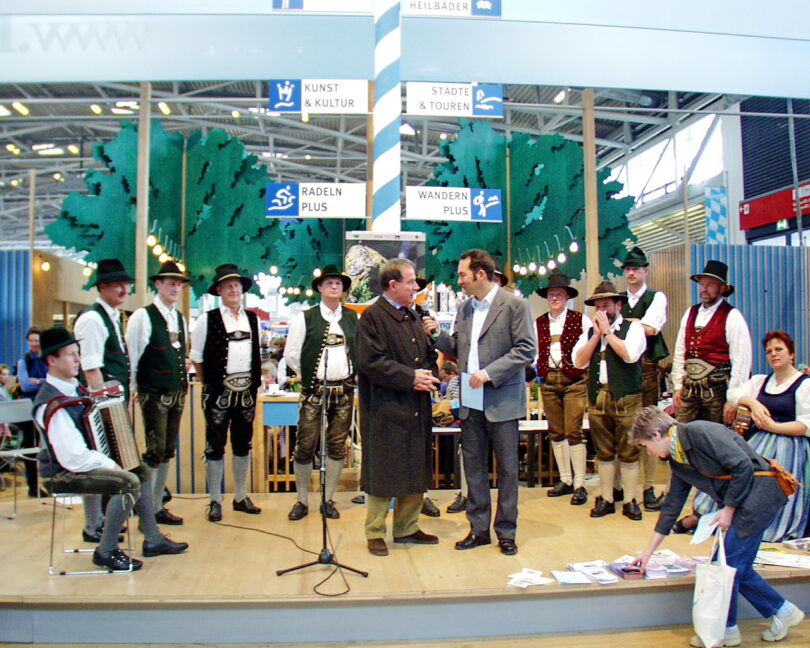 Bericht: Bayerisches Wirtschaftsministerium – Archiv-Foto: Hötzelsperger (Reisemesse München im Jahr 2002 mit Samer Sängern)