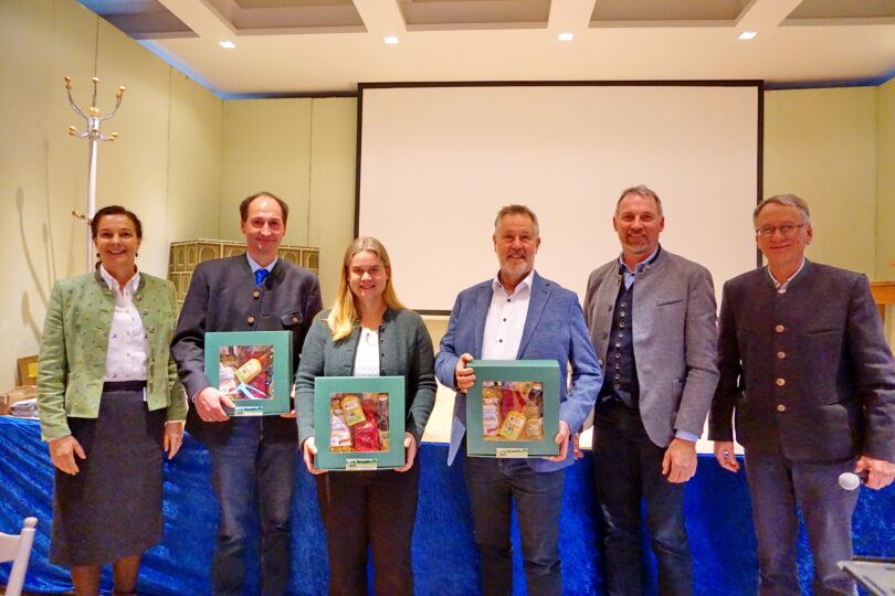 Bericht und Bilder: AELF Rosenheim – v.l.n.r.: Monika Schaecke (SGL vom AELF Rosenheim), Georg Baumann (LKV Fütterungsberater), Sandra Mühlbauer (LfL München), Prof. Wilhelm Windisch (TUM), Sepp Grandl (VLF Vorsitzender) und Dr. Georg Kasberger, Behördenleiter vom AELF RO.