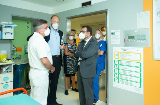 Um diesen nächsten Schritt gehen zu können, braucht es mehr Personal, zeitgemäße Räumlichkeiten sowie eine Ausstattung, die den neuesten medizin-technischen Anforderungen entspricht. Beim Klinikrundgang konnte sich Bayerns Gesundheitsminister Klaus Holetschek davon überzeugen, dass die Fördergelder gut angelegt und noch weitere Verbesserungen möglich sind.Die Zentrale Notaufnahme ist so ein Beispiel. Die Ausstattung ist funktionell und alles Notwendige ist da, nur: „Der Schockraum, hier werden Schwerstverletzte erstversorgt, ist wirklich nicht besonders groß. Wenn man nicht aufpasst, dann tritt man dem Kollegen schon mal auf die Füße“, ist zu vernehmen.