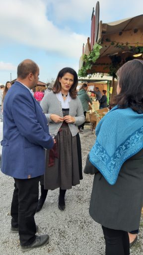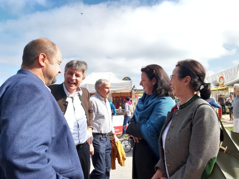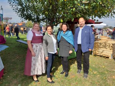 Dass die Bayerische Staatsministerin für Ernährung, Landwirtschaft und Forsten Michaela Kaniber  immer ein offenes Ohr für die Anliegen der Landwirte hat, zeigte sich auch bei ihrem Besuch auf dem Apfelmarkt in Bad Feilnbach. Dort gesellte sich die Ministerin während ihres Rundgangs zum unkomplizierten Austausch der Bauernverbands-Vorstandschaft hinzu und tauschte sich zu aktuellen Anliegen der Rosenheimeer Landwirtschaft aus.