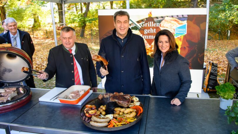 Am 28. Oktober haben Ministerpräsident Dr. Markus Söder, MdL, Landwirtschaftsministerin Michaela Kaniber, MdL, und der Präsident des Bayerischen Bauernverbands, Walter Heidl, im Rahmen der Grillaktion „Grillen geht immer!“ im Innenhof des Prinz-Carl-Palais in München über die aktuelle Lage in der Landwirtschaft informiert. Ministerpräsident Dr. Markus Söder, MdL: “Wir brauchen mehr Bewusstsein für die Qualität unserer regionalen Lebensmittel. Sie sind heimisch produziert und in der Welt geschätzt. Unsere Landwirtschaft verdient mehr Vertrauen und Wertschätzung.”