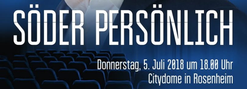 „SÖDER PERSÖNLICH“ – so heißt eine Informationsveranstaltung der Christlich Sozialen Union am Donnerstag, 5. Juli um 18 Uhr im Citydome Rosenheim, Kufsteiner Str. 34, 83022 Rosenheim. Markus Söder erzählt hierbei über seine politische Laufbahn und seine Visionen sowie unsere Heimat Bayern, Einblicke über Weggefährten, Freundschaften und auch seinen Glauben. Außerdem verrät Markus Söder, wer die Ideen seiner Faschingskostüme hat und warum seine Hunde dabei eine entscheidende Rolle spielen. Wegen der begrenzten Platzkapazitäten ist eine vorherige Anmeldung unter www.csu.de/soeder erforderlich.
