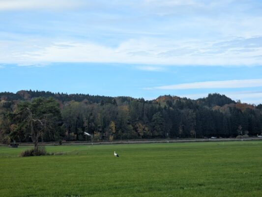 Und dann, mitten auf einer Wiese, stehen sie– zwei Störche!