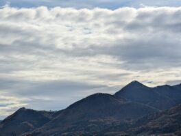 Der Chiemseeuferweg zeigt sich heute von seiner stillsten Seite – kaum ein Mensch ist unterwegs. Hinter dem Schöllkopf öffnet sich die Landschaft, die Felder leuchten in warmen Tönen und dahinter tauchen die Berge auf. Auf der Kampenwand und dem Hochgern liegt Schnee.