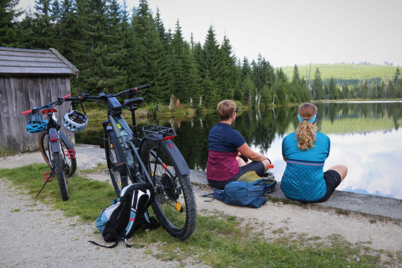 Weiter geht die Radtour nach Borová Lada und zum Königsfilz. Nach dem Besuch des Moores führt die Radtour die Teilnehmer nach Kaltenbach und Pláně, weiter zur Sprungschanze, Churáňov, Goldbrunn bis Ranklau und ab hier nach Horská Kvilda. Dort wird eine gemütliche Mittagspause eingelegt, bevor es über Kvilda und Buchwald wieder zurück zum Ausgangspunkt in Finsterau geht.