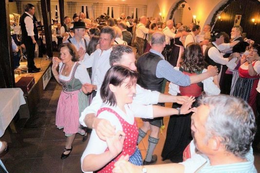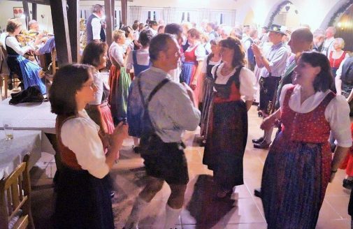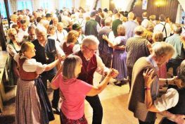 Frisch gestärkt nahmen die Paare nach der Pause den Höhepunkt jedes Volkstanzabends des Rosenheimer Volkstanzkreises in Angriff, die Münchner Française. Dabei geht es „ein bisserl vornehm und ein bisserl leger“ zu und etwas anspruchsvoller sind die fünf Touren mit Grüßen, Vorstellen, Platzwechseln und unterschiedlichen Paareinteilungen auch. Aber am Ende waren sich alle einig, dass sie es nach den Anweisungen des Tanzlführers wieder „Ausgezeichnet!“ gemacht hatten