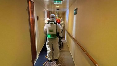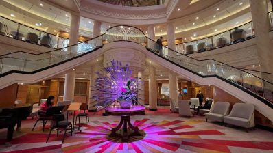 Derzeit befinden sich rund 1500 Passagiere aus 25 Nationen an Bord, darunter 100 Deutsche, aber, wie schon beim ersten Teil der Reise, wieder überwiegend Engländer. Damit ist das Schiff aber nur halb voll, was sehr angenehm ist, weil man kaum, ob an den vielen Liften oder beim Essen, warten muss. 1310 Kabinen hat dieses schwimmende Luxus- Einkaufs- und und und -Hotel. Die knapp 1300 arbeitenden Menschen an Bord stammen aus 59 Ländern, rund 400 aus Indonesien oder anderen asiatischen Ländern, wie z. B. Indien und aus Afrika.