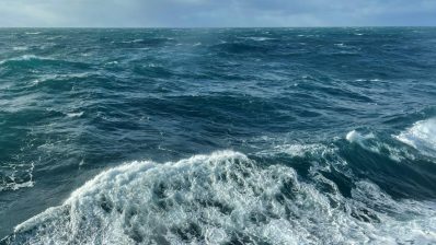 Mittlerweile ist die See unruhig. Beim Gehen muss man aufpassen, denn das Schiff schwankt bei seitlichen Wellen, dass man manchmal die Gänge entlangläuft, als hätte man eine Flasche Wein intus. Im Bett erinnert es an eine Wiege in der Baby-Zeit. Mir macht es überhaupt nichts aus. Die Größe des Schiffs wirkt sich natürlich positiv auf die Stabilität aus und dennoch sind wir ein Spielball in dieser riesigen Wasserwüste. Wenn ich die Wellenberge von schätzungsweise 5 m Höhe anschaue kann ich mir vorstellen, wie die kleinen Boote da rauf und runter und hin und her geworfen wurden und das Wochenlang – mit den Segelschiffen in den Jahrhunderten vorher.