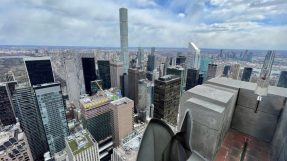 Gleich am Nachmittag verschaffte ich mir, hochbefördert mit einem der 73 Aufzüge des Empire-State-Buildings, einen Überblick über die Wolkenkratzer, die wie mit hunderte von Nadeln – wie auf einem gespickten Rehrücken – auf dem Felsenuntergrund Manhattans stehen. Die „Normalen“, 20 bis 50 Stockwerke hohen Häuser, sehen vom 102tem Stockwerk aus 373 m Höhe (Gesamthöhe 443,2 m), ziemlich klein aus und die wenigen ganz „Kleinen“, mit nur 6 bis 10 Stockwerken sieht man gar nicht mehr. Es ist kaum zu glauben, dass diese schlanken Haustürme mit einer im Verhältnis kleinen Grundflächen zur Höhe so sicher im Granitfelsen „verwurzelt“ werden können. Allerdings es ist nichts gegen die Stabilität eines Getreidehalms. Der würde, rechnerisch vergrößert, auf die Höhe des Empire-State-Buildings, nur eine Grundfläche von ca. 3 bis 3,5 m benötigen – und noch dazu ganz oben das meiste Gewicht tragen.