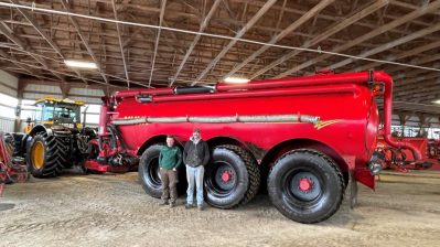 Nach und nach vergrößerten sich die Pachtflächen auf heute 250 ha und – dann wurden natürlich, zur großen Freude von Jonas – auch die Maschinen immer größer. Jim unterstützte ihn dabei als Geldgeber nach dem Motto, Fachwissen und Investment zusammenzulegen. Aber leider wurde es wegen der großen teuren Maschinen für „nur 250 Hektar“ zunehmend unrentabel. Es lag dann auf der Hand, wie bei unseren Maschinenringen, die es in dieser Gegend Kanadas aber nicht gibt, zur besseren Auslastung die Maschinen, sie überbetrieblich bei anderen Farmern einzusetzen. Heute zählen 8 Schlepper von 140 bis 480 PS und sämtliche Maschinen zur Bodenbearbeitung, sowie ein Jauchefass mit 27 m³ Fassungsvermögen und einen Miststreuer für 25 m³ Fassungsvermögen, zum Maschinenpark.