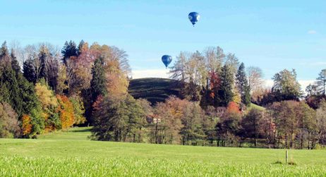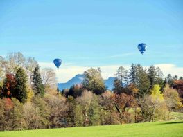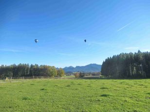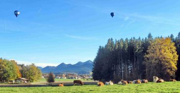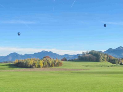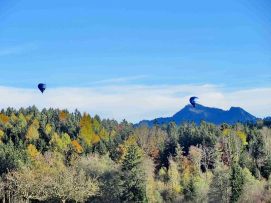 “Wer wird denn gleich in die Luft gehen?” – frei nach diesem alten Werbespruch gibt es gerade im Chiemgau die passende Antwort: “Jeder, der sich einmal die Schönheit der Chiemgauer Seen- und Berglandschaft von oben anschauen möchte!”. Heißluftfahrten sind heiß begehrt, besonders wenn Wetter und Thermik mitspielen. Unsere aktuellen Bilder entstanden am letzten Oktobertag und sie zeigen die beiden Ballons (Meggle und BR Bayern 1) auf ihrem Weg über das westliche Gemeindegebiet von Prien und unter anderem mit Hochgern und Kampenwand im Hintergrund.