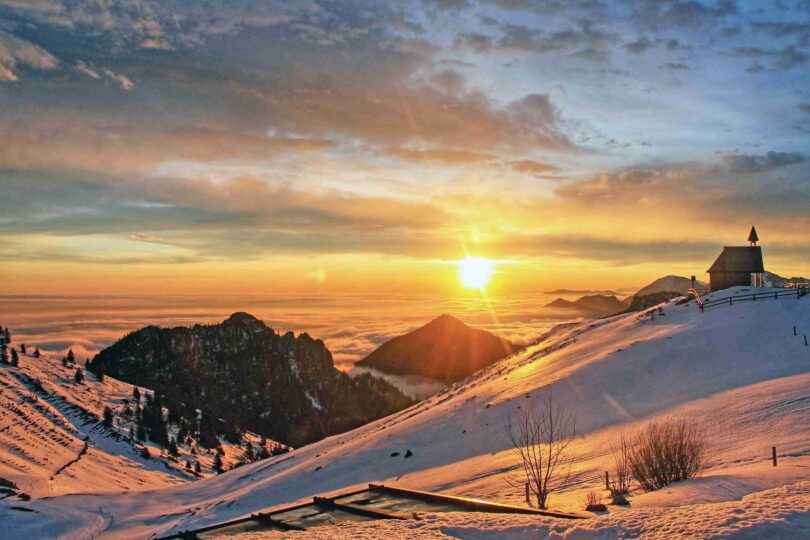 “So fängt doch der Tag perfekt an und das Wochenende kann kommen!” – diese Stimmung entsteht -so Herbert Reiter als Leiter der Tourist-Information Aschau i. Chiemgau dank dieser traumhaften Bilder, die zur frühen Morgenstunde die Webcams auf der Kampewand zeigen.