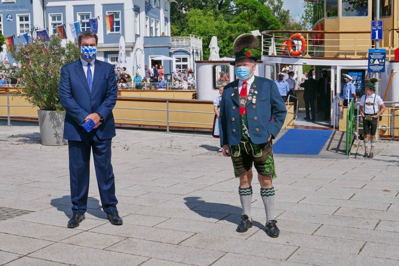 Max Bertl, Landesvorsitzender vom Bayerischen Trachtenverband ist auch in Corona-Zeiten viel unterwegs. Für einen großen Landesverband gibt es viele Dinge zu regeln und Kontakte zu pflegen. Eine große Gelegenheit zum netzwerken bestand jüngst beim Empfang von Bundeskanzlerin Angela Merkel durch das Bayerische Kabinett mit Ministerpräsident Dr. Markus Söder im Hafen von Prien-Stock am Chiemsee – davon einige Bildereindrücke.