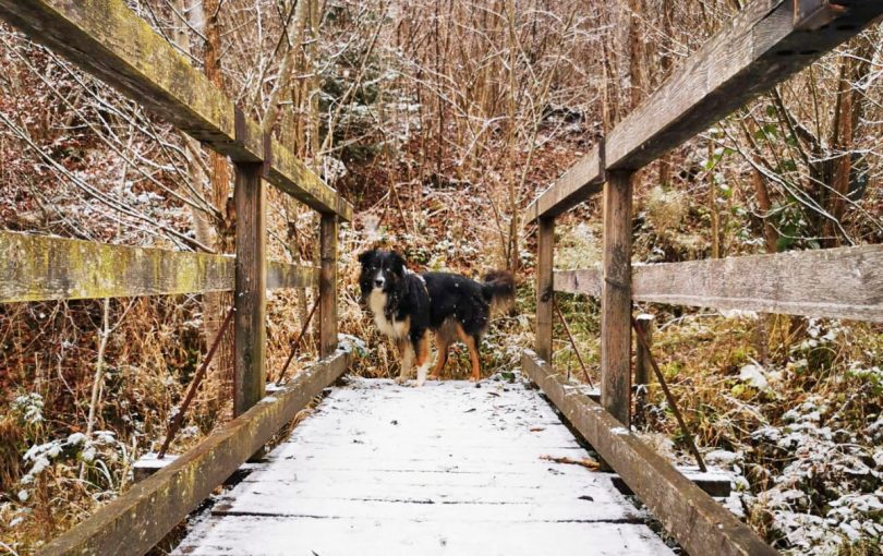 Erster und leichter Schneefall auf dem Weg zum Advent war genau das richtige Wetter für den Hund Mounty. Seine Lieblingstouren hat er -wie auf diesen Bildern zu sehen ist – in der Freizeitregion Simssee.