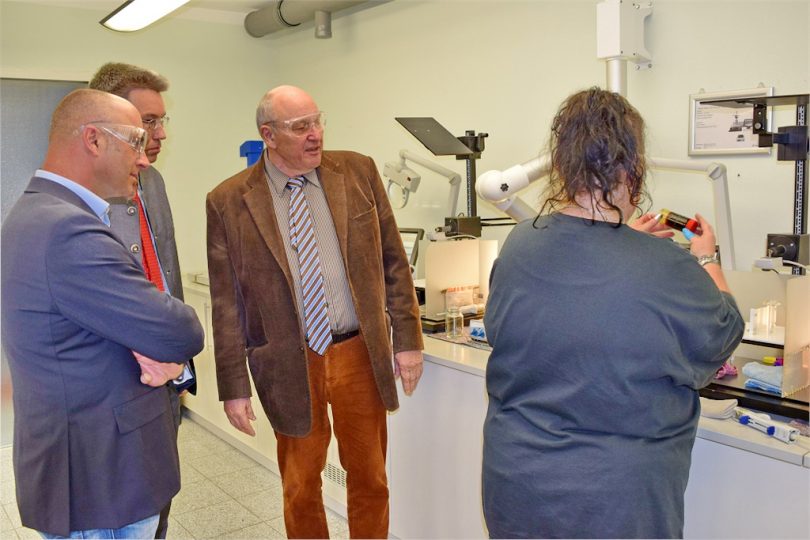 Begeistert zeigte sich Otto Lederer beim Rundgang durch die Laborräume mit Peter Weismann, der dabei den Weg einer Ölprobe durch das Labor und die zur Analyse eingesetzten Geräte erklärte: „Es ist erstaunlich, wie detailliert ein Schmierstoff geprüft werden kann, um ihn auf seine weitere Einsatztauglichkeit zu prüfen. In dieser Arbeit stecken viele Erfahrungswerte, die über die Jahrzehnte hinweg gesammelt wurden.“