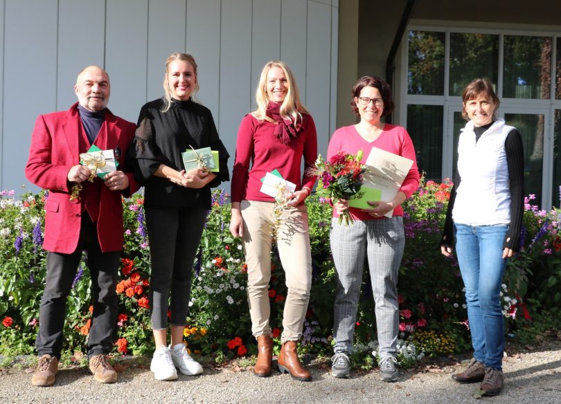 Bildunterschrift: (v.l.n.r.) Die Geschäftsführerin der Prien Marketing GmbH Andrea Hübner (im Bild rechts) sprach den Jubilaren Wolfgang Pemp, Magdalena Berka, Lisa Morgenstern und Gabi Oberloher im Beisein von Kolleginnen und Kollegen Dank und Anerkennung für ihre langjährige Tätigkeit bei der Tochtergesellschaft der Marktgemeinde Prien aus.