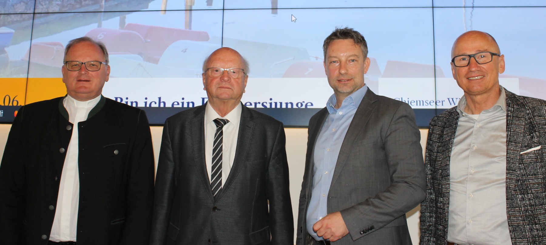 Gruppenbild mit dem wiedergewählten Vorstand: (v.l.n.r.) Monsignore Dr. Thomas Frauenlob, 1. Vorsitzender Altlandrat Hermann Steinmaßl Schatzmeister Roger Pawellek und Christian Kegel. Fotocredit @ Gabi Rasch